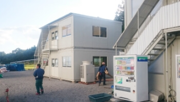 1階、空調設備工事用休憩所。2階、電気工事用休憩所。
